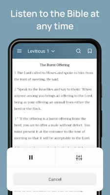 1 - Simple and easy to use app 2 - Dark Mode to app 3 - Easy navigation and easy to use 4 - Listen to the Bible at any time 5 - Allows you to add notes to the verses of your choice 6 - Change the subject at any time 7 - Share your verses in the social networks 8 - Allows change text size