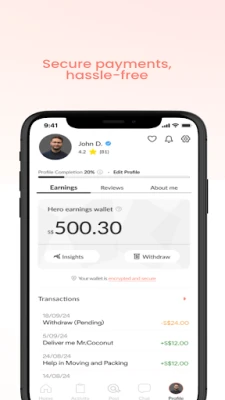 Your safety is our number one priority. To ensure smooth transactions, you make or receive payments through the app. All Quest users are verified and authenticated. Our team ensures that the Quest community is safe and secure for all Citizens and Heroes.