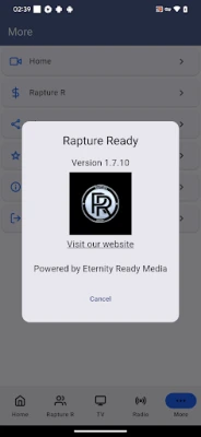 * We have a Bible Prophecy called RatureReady.com * We have a TV Web Site called RaptureReady.tv * We partner with Eternity Ready to offer a World-Wide Family Friendly Christian Alternative Radio Station called EternityReadyRadio.com